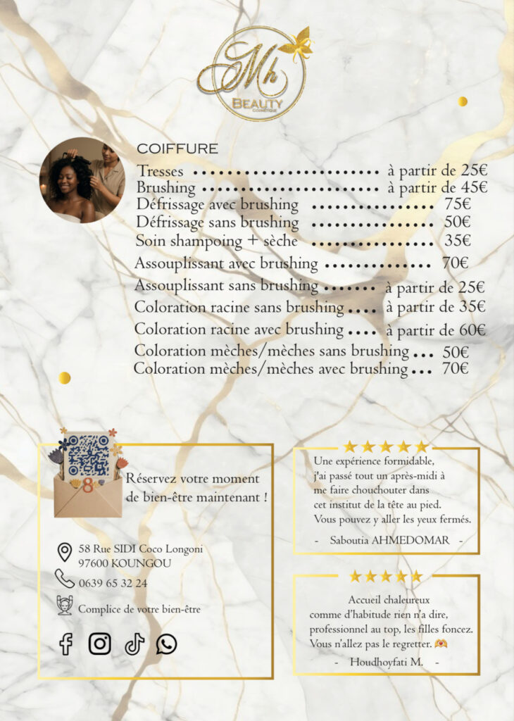 Chez Mhbeauty, nous sommes fiers de vous offrir des services de qualité aux tarifs les plus raisonnable. Découvrez nos prix imbattables et profitez de la beauté sans compromis.